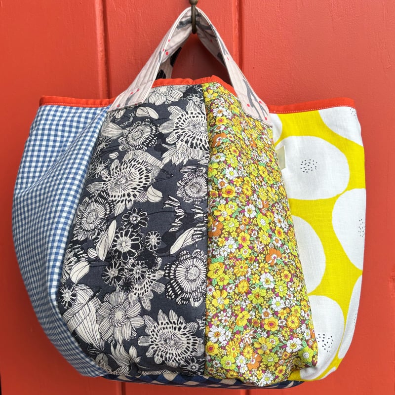 This one-of-a-kind, handmade bag is cleverly designed to hold your knitting project,